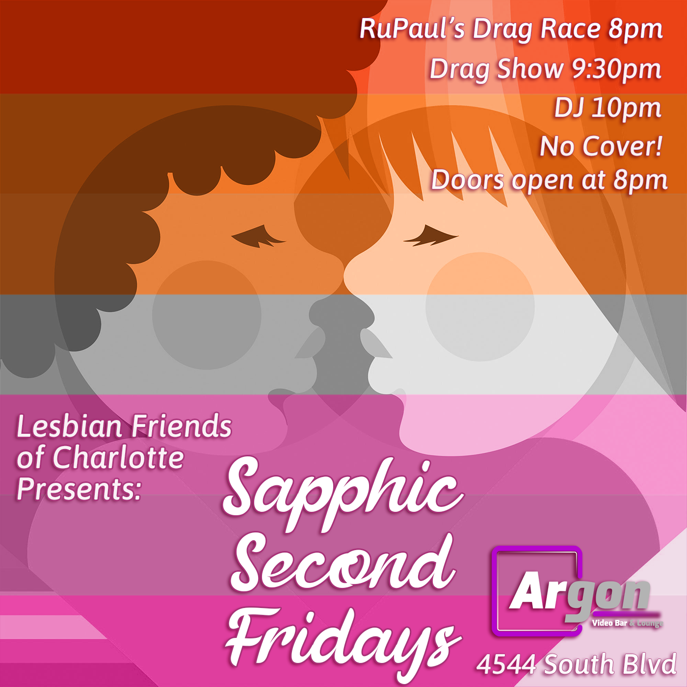 This Friday and every Friday is Sapphic Social at Bar Argon. Join the fabulous staff at Bar Argon for some great drinks, hot hits by Charlotte's best DJs, and meet up with old and new friends at the Queen City's LGBTQIA+ dance bar.